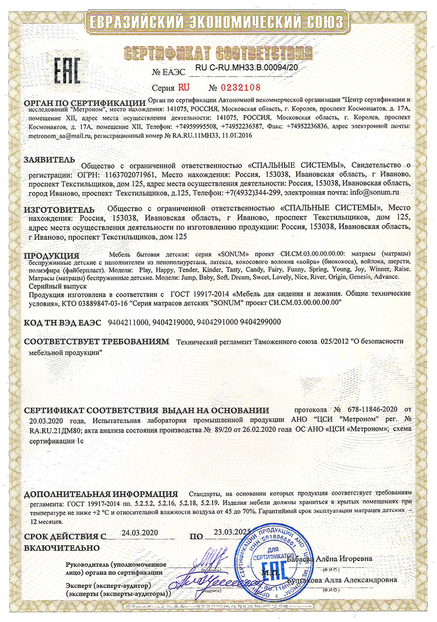 покупке матраса